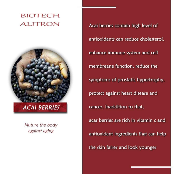 Alitron giúp chống lão hóa, chống ung thư, sửa chữa/tái tạo tế bào. Ngăn chặn mất thị lực, cân bằng nội tiết tố, cải thiện ham muốn tình dục, và là một sản phẩm dinh dưỡng phù hợp cho cả nam và nữ.