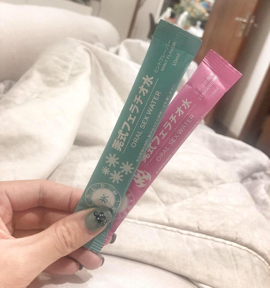 ➤ Nước tình yêu quan hệ đường miệng Water có 2 gói: xanh (từ bạc hà) và hồng (vị dâu) vừa làm sạch khoang miệng, ngăn ngừa viêm nhiễm, vừa tăng thêm sự hưng phấn, giúp tạo cảm giác thăng hoa mãnh liệt, chinh phục đối phương.